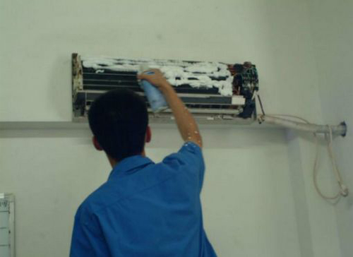 | 七星空调维修师傅给七星用户上门维修清洗空调。 |